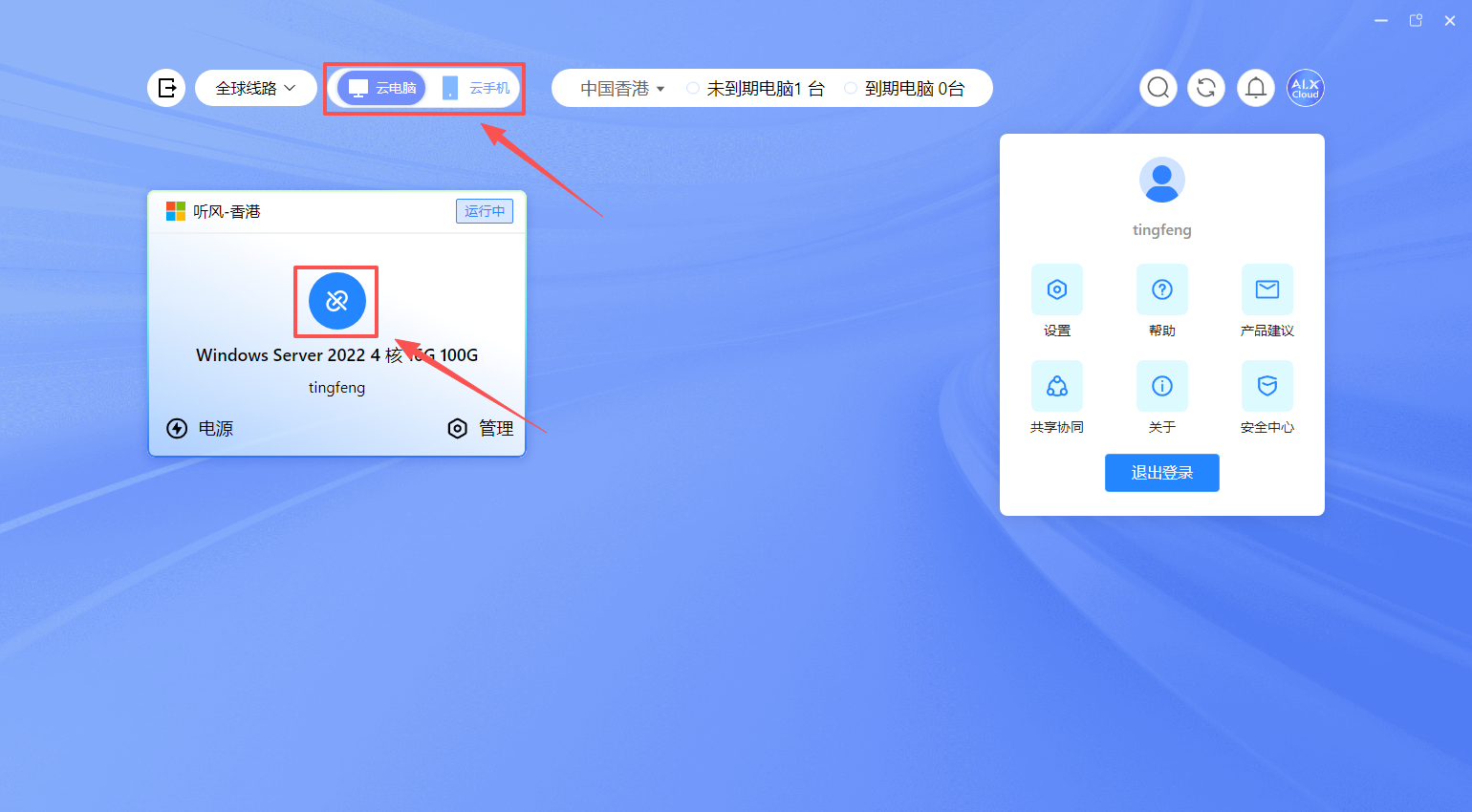 **登录之后会看到账号中的云电脑**