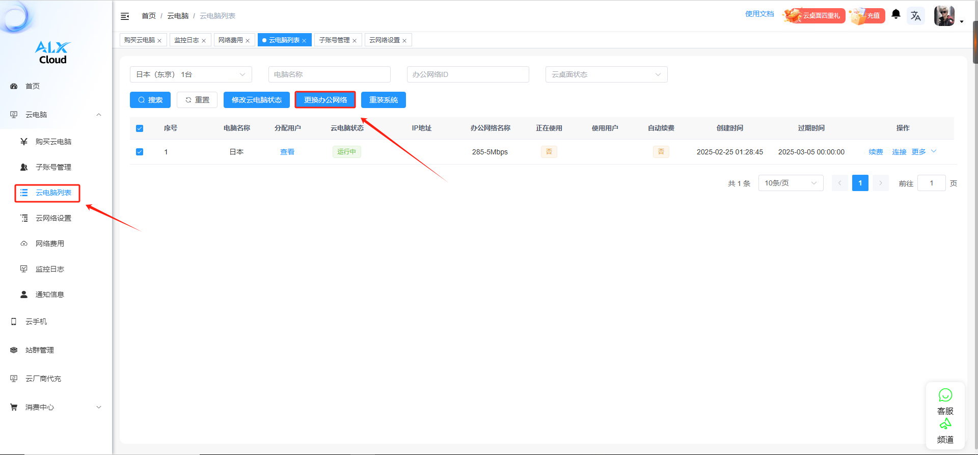 4.为云电脑绑定新的办公网络-【更改办公网络】-可以批量更换云电脑的办公网络