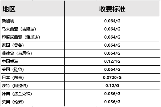 说明 每个地域流量收取的费用是不同的，详情请看[官网介绍](https://login.alxcloud.com/)