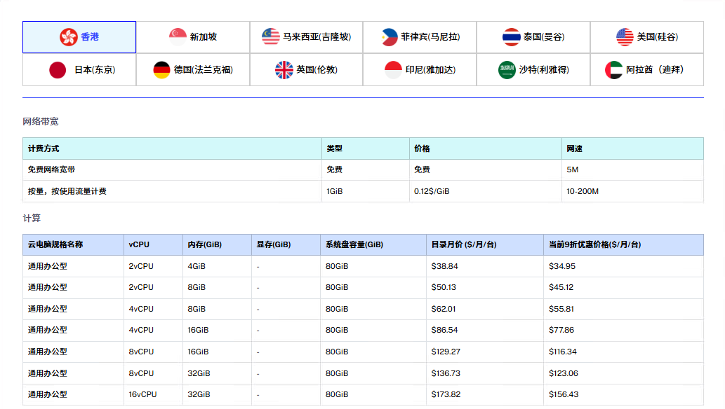 如需更多地区价格详情，请参考[官方网站](https://tingfeng-co.gitbook.io/alxyun-shi-yong-wen-dang/guan-fang-lian-jie)