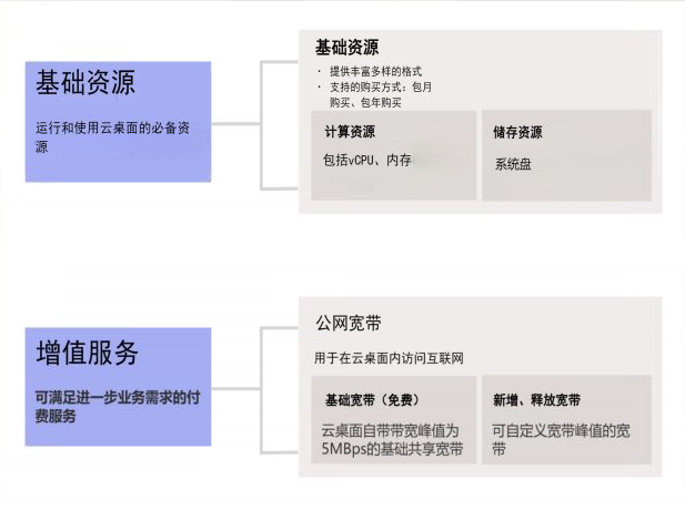 **基础资源是运行和使用云电脑时的必备资源，包括：**